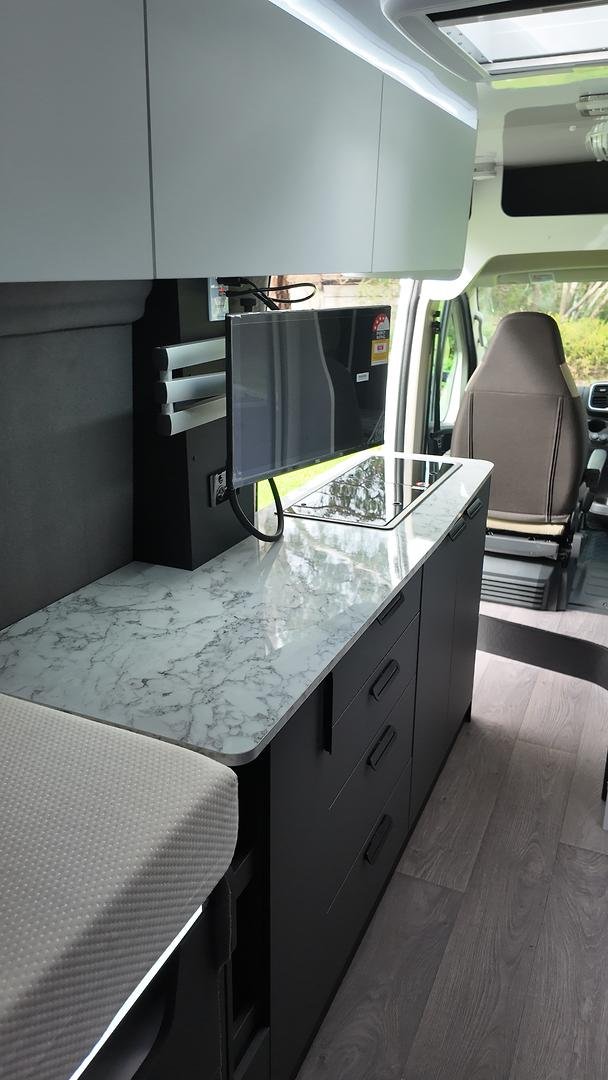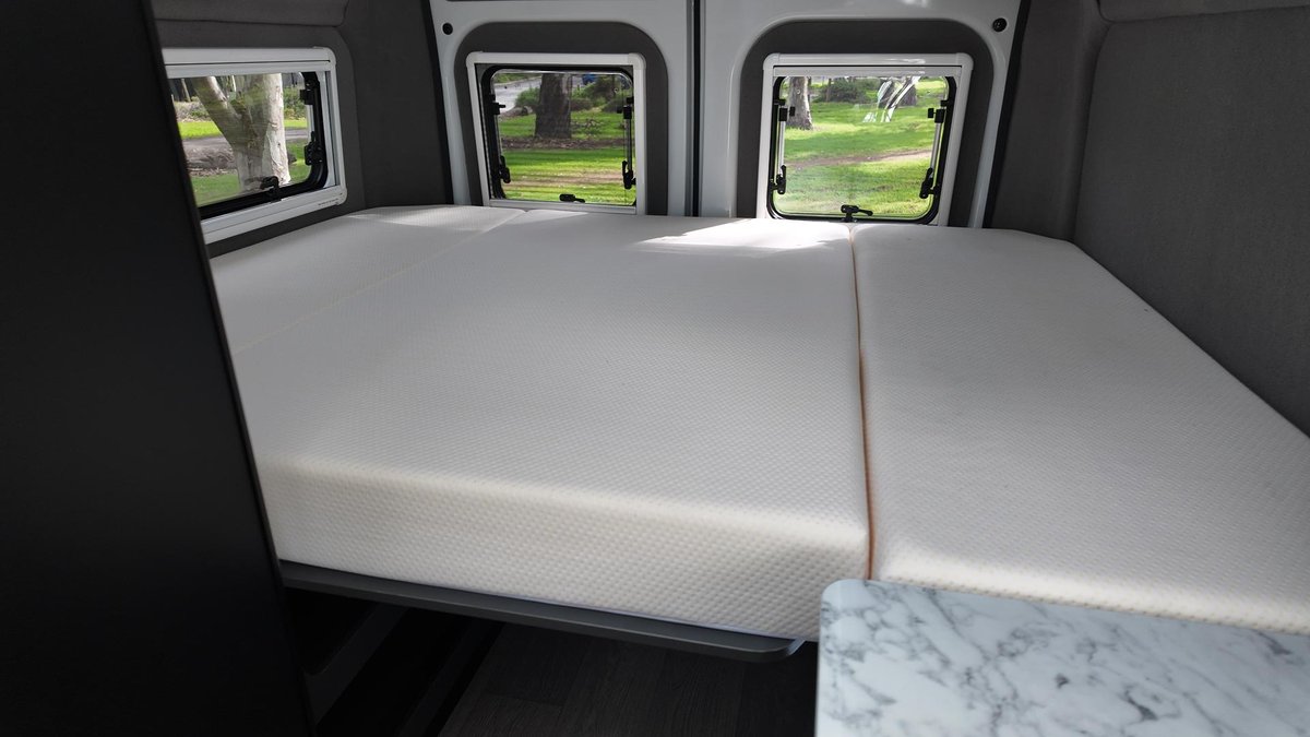 Compact yet capable, the Trek campervan makes adventure effortless. With its standard licence requirement, streamlined design, and 6.4-metre length, it’s easy to drive and park—offering a smooth, comfortable ride backed by the reliability of the Fiat Ducato XLWB chassis.