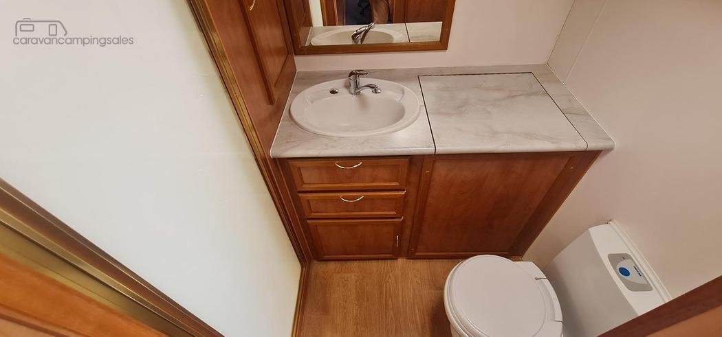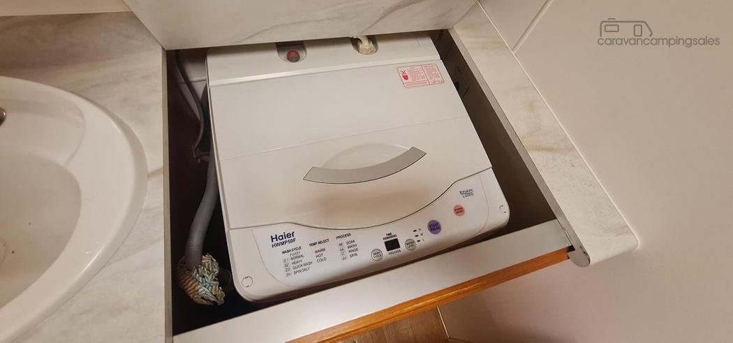Ensuite, Full length mirror shower door, Thetford toilet, Lemair washing machine